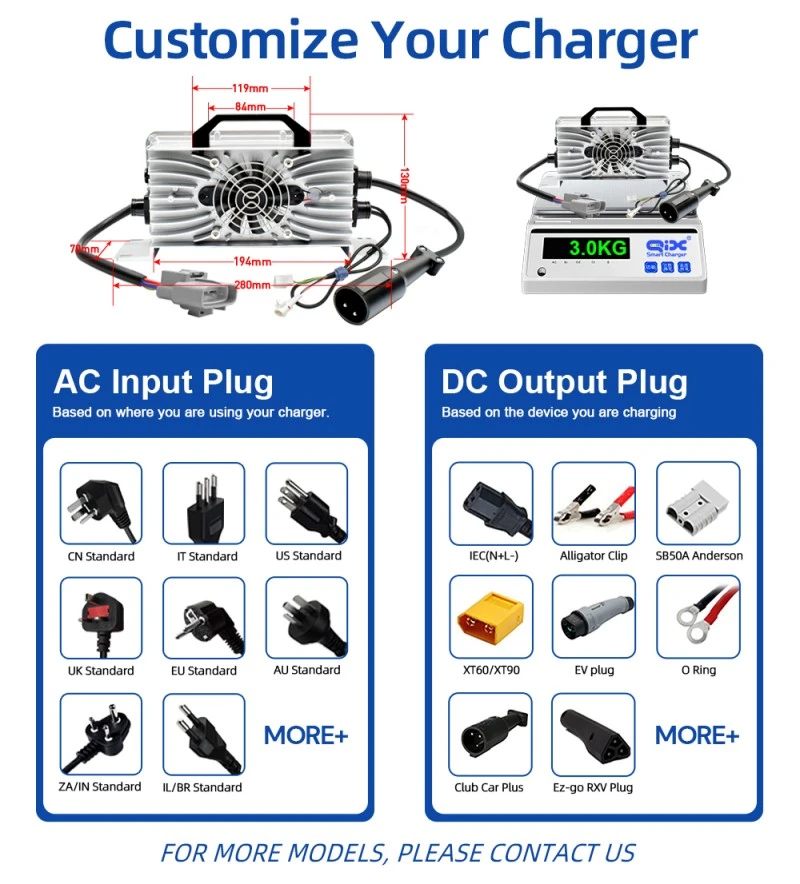 電気自動車、フォークリフト、ゴルフ カート、船舶システムに適したこの STARWELL 車載充電器は、多用途性、速度、安全性を兼ね備えており、移動中のバッテリー ニーズに応える信頼できる電源ソリューションです。
