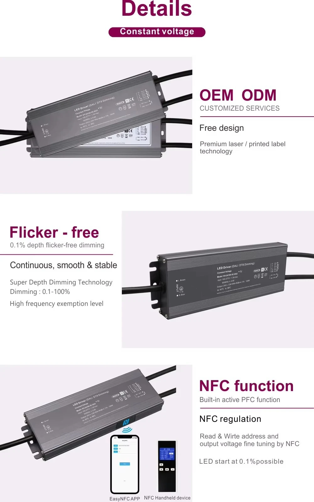 信頼性、インテリジェンス、多用途性を考慮して設計された当社の高性能 100W 定電圧 LED ドライバーを使用して、照明プロジェクトを向上させます。洗練された 12V または 24V LED システムに電力を供給するように設計されたこのドライバーは、プロフェッショナル グレードの設置の堅牢な心臓部です。
