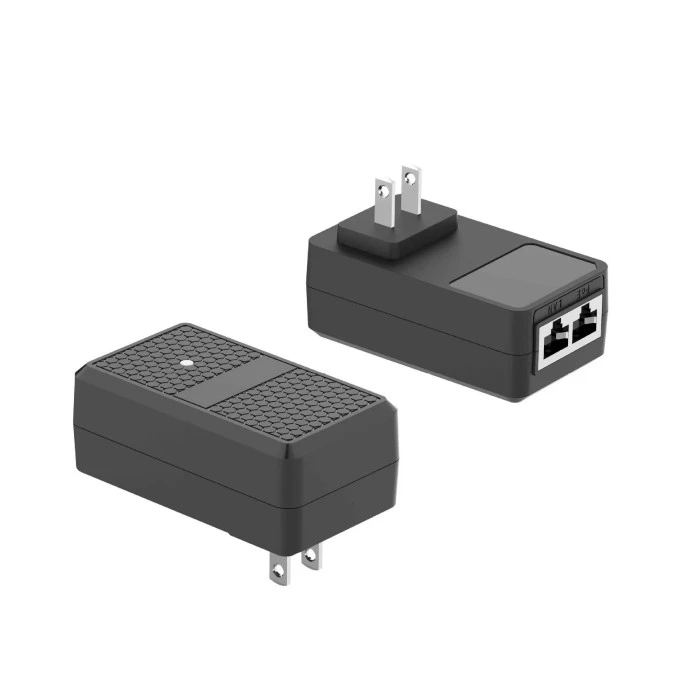 12W ウォール マウント交換可能プラグ PoE インジェクターは、電源アダプターとパッシブ PoE インジェクターを 1 つのコンパクトなユニットに組み合わせた統合ネットワーク電源デバイスです。電源アダプターとインジェクター モジュールの両方を必要とする従来の PoE セットアップとは異なり、この設計では、デバイスを壁のソケットに直接取り付けることができるため、設置が簡素化されます。