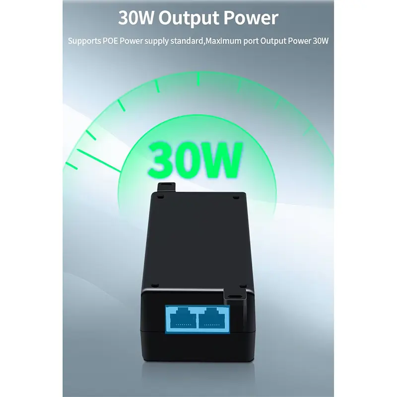耐久性のある構造: 高性能 30W Poe インジェクターはシームレスな超音波接合を備えており、埃や物理的ストレスに対する保護が強化されています。