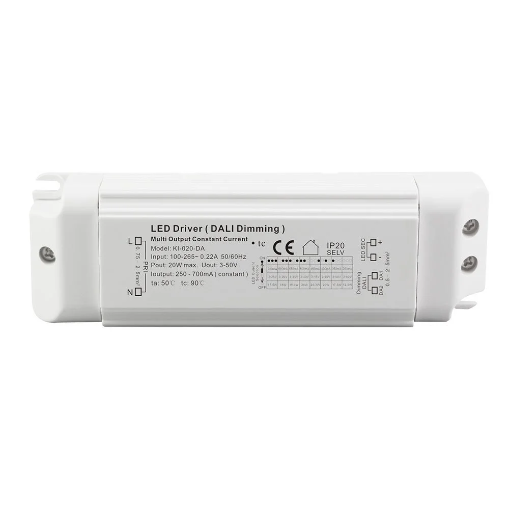 結論として、これは包括的な機能と信頼性の高いパフォーマンスを備えた 20W 定電流 DALI 調光 LED ドライバーです。複雑な DALI インテリジェント照明ネットワークを構築する必要がある場合でも、安定して使いやすい調光可能なドライバーを探している場合でも、この 20W DALI 調光定電流 LED ドライバーは優れた選択肢となり、あらゆる種類の LED ランプにスマートで効率的かつ長寿命の電力を供給します。