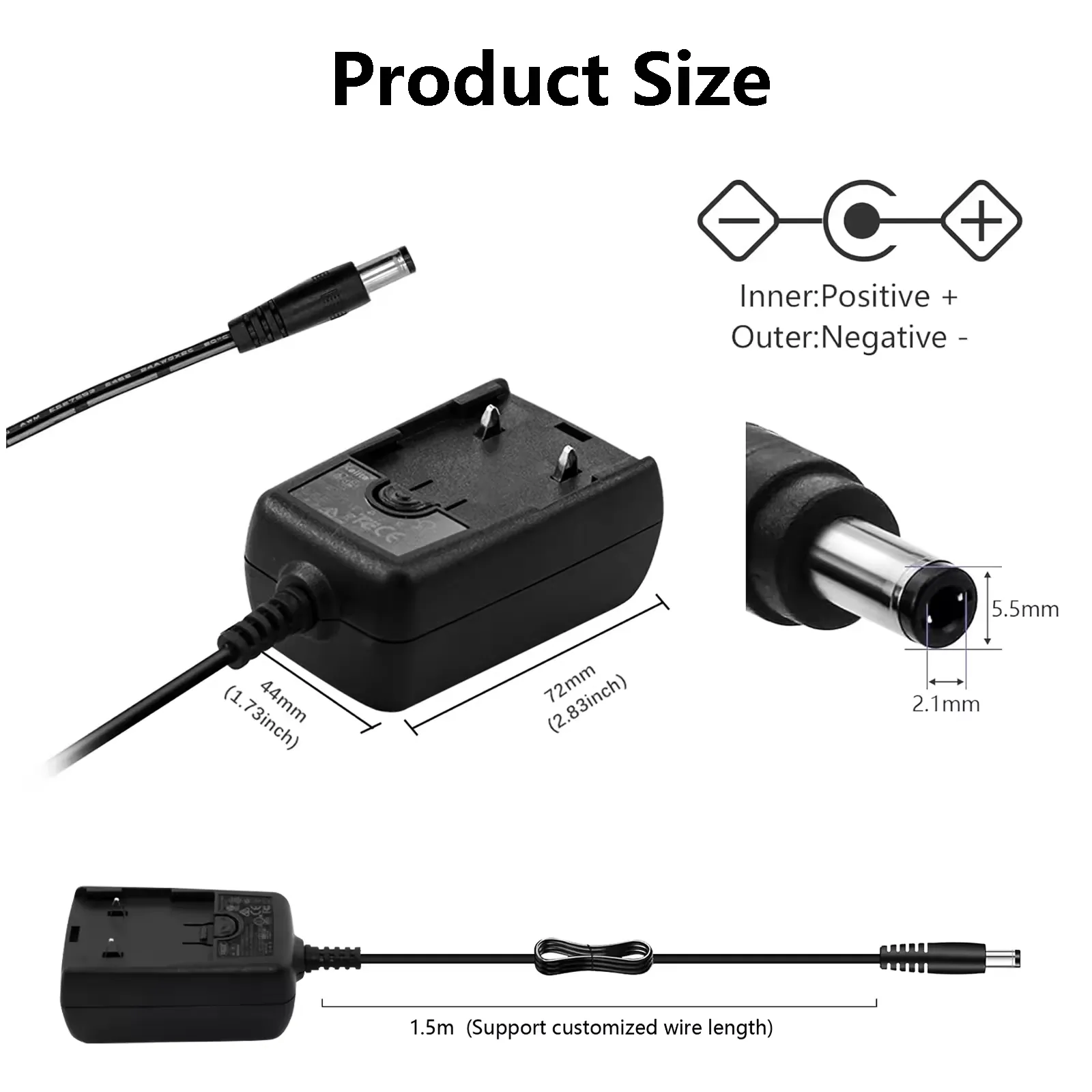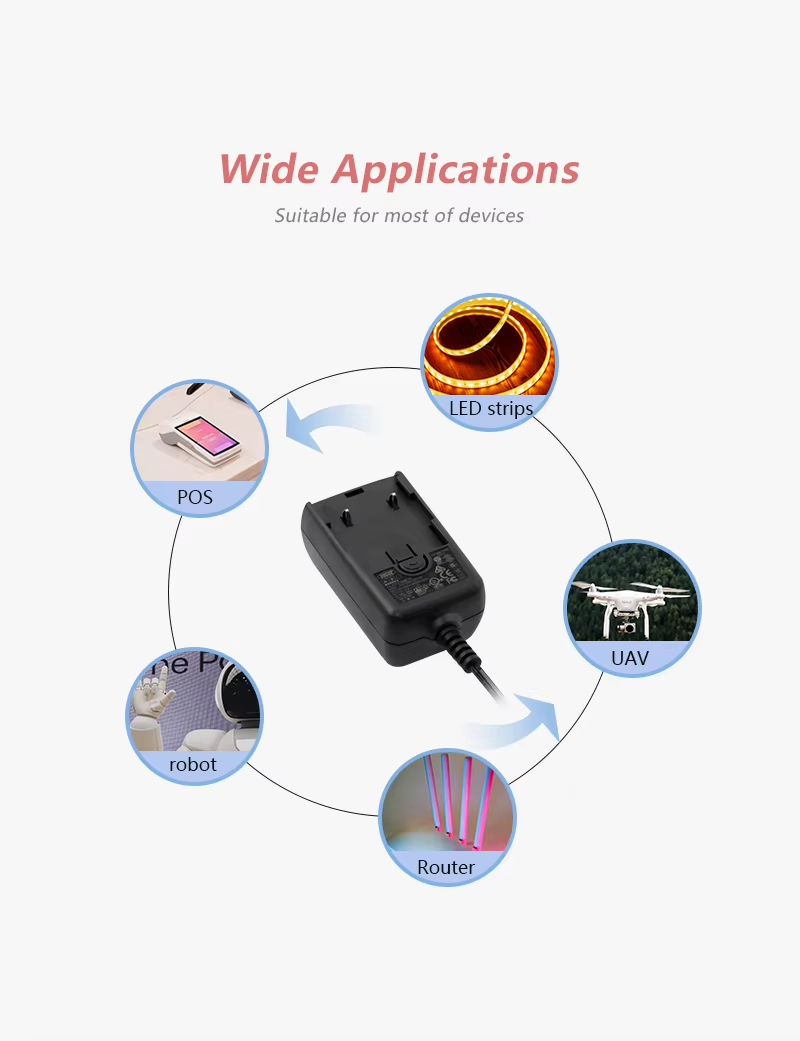 幅広い応用シナリオ: LED ライト ストリップ、スマート スピーカー、ネットワーク ルーター、その他の小型電気製品への電力供給であっても、この強力なスイッチング交換可能なプラグ電源は、最も理想的で安心できる選択肢です。