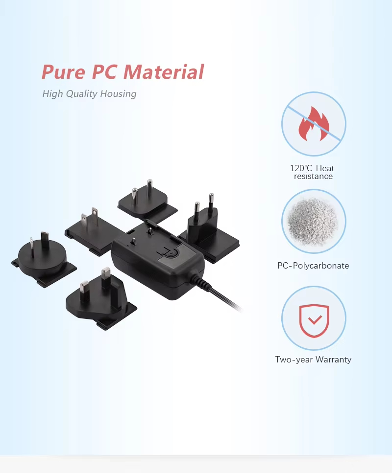 効率的かつ安定した電源供給:高性能24W電源アダプタとして、高度なスイッチング交換プラグ電源技術を採用し、効率的な変換を実現します。交流を直流に安定して変換でき(AC - DC 交換可能なプラグ電源アダプター)、デバイスに継続的で純粋なエネルギーを提供します。