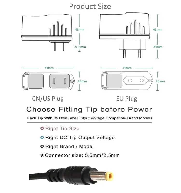 高品質の24W電源アダプタは中国のメーカーStarwellによって提供されており、このアダプタには米国、英国、EU、AUプラグなどの種類のプラグがあります。