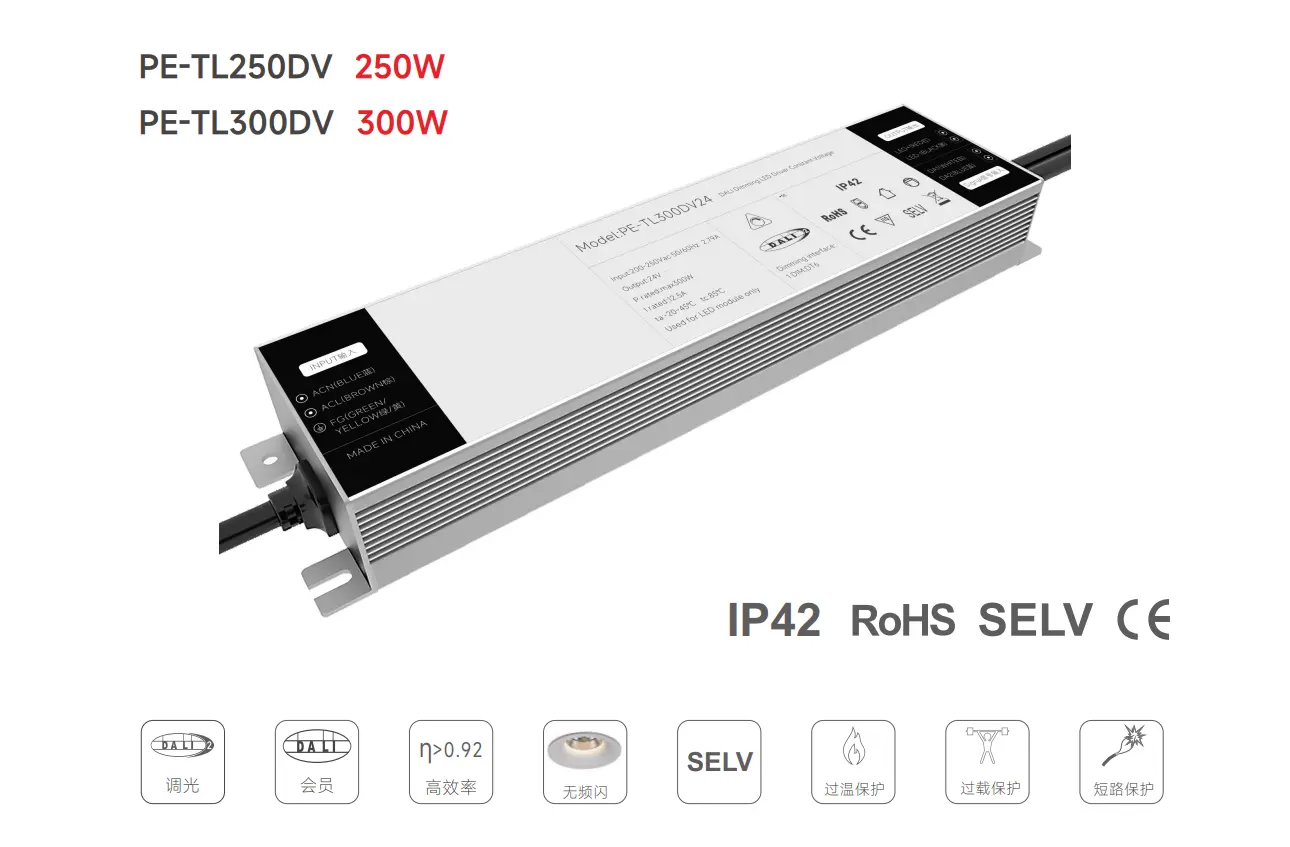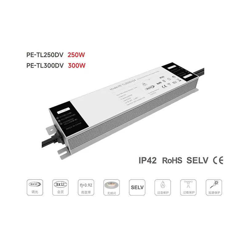 Starwell 工場の高品質 250W 定電流 DALI 調光可能 LED ドライバは、プロフェッショナル LED 照明システム用に設計された高性能電源ソリューションで、DALI-2 プロトコルを介したスムーズでちらつきのない調光を備えた安定した 24V DC 出力を提供します。 IEC 62386 規格に準拠し、0 ~ 100% の線形調光をサポートし、商業、産業、建築アプリケーション向けの DALI コントローラーおよび照明管理システムとのシームレスな互換性を保証します。