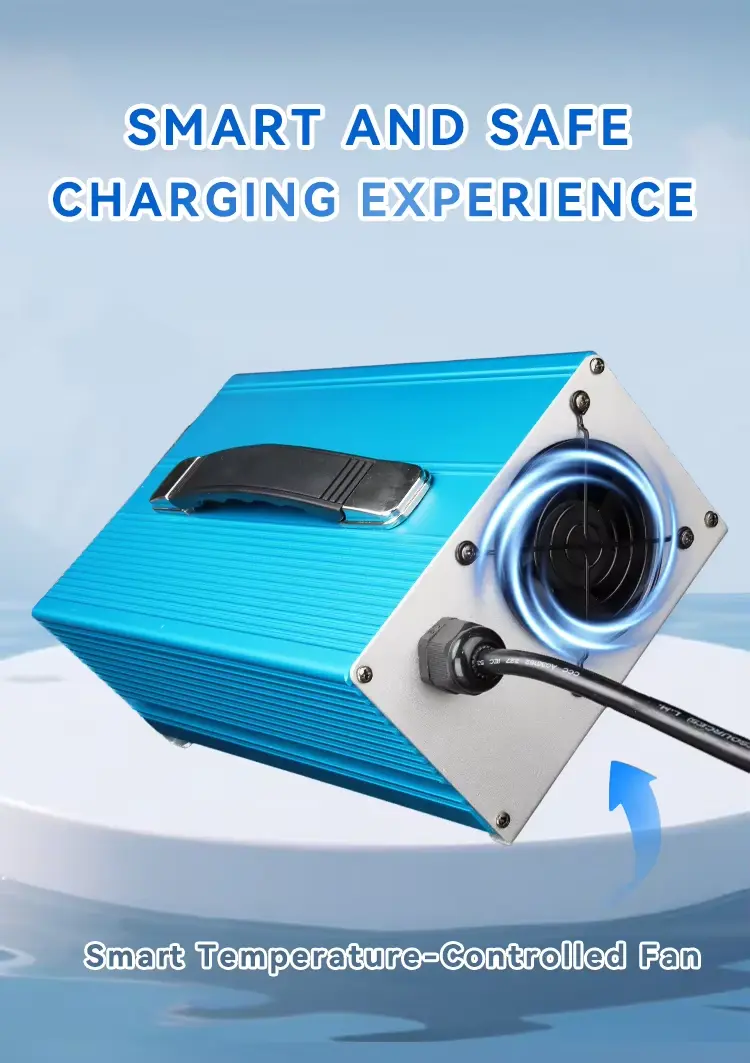 インテリジェントな 4 段階の充電ロジック (プリチャージ、定電流、定電圧、フロート充電) を採用しており、確実にフル充電しながらバッテリー寿命を効果的に延長します。過電圧、過電流、過熱、短絡、逆極性保護などの完全な保護メカニズムが組み込まれており、動作の安全性と信頼性が向上します。この充電器はフル充電時の自動電源オフをサポートしており、ユーザーは手動監視から解放されます。