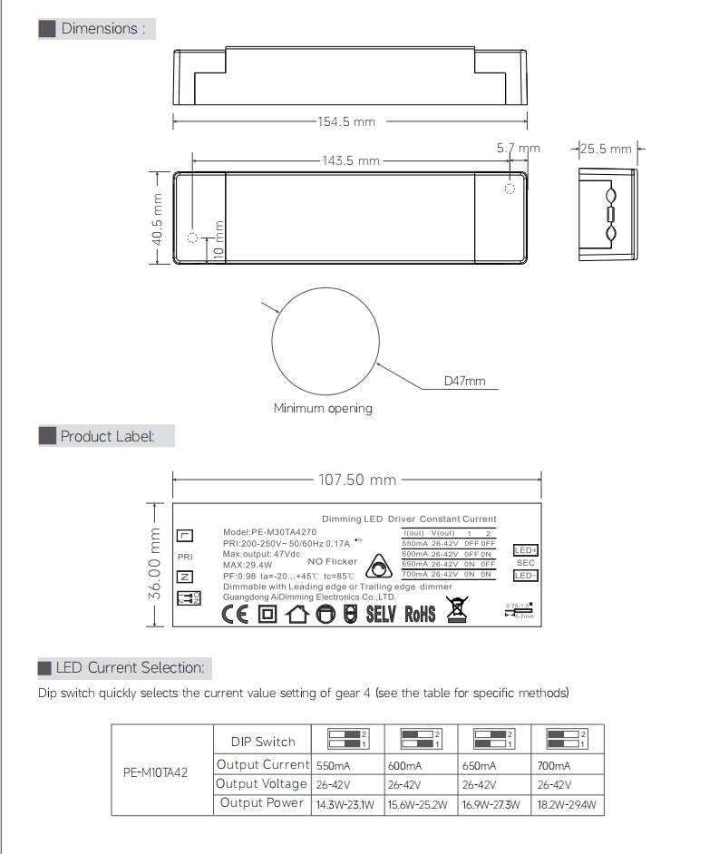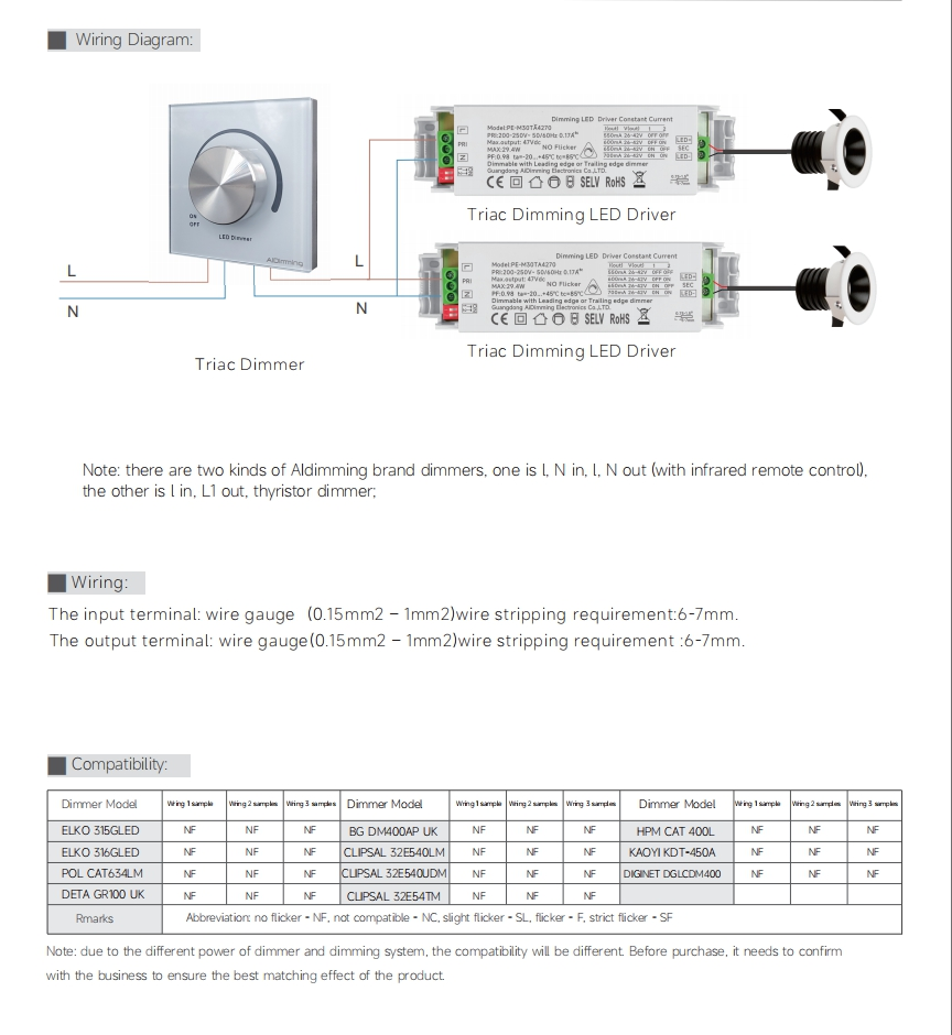超小型設計、使用される原材料は第一線のブランド、輸入チップの超深調光設計、さまざまなヨーロッパブランドの調光器に適合抗サージ電圧 2KV、スムーズな調光、ちらつきのない、調整可能な電流設計、調光プロセスの低ノイズ