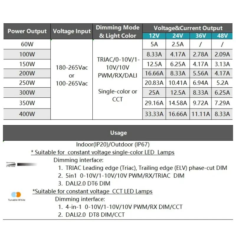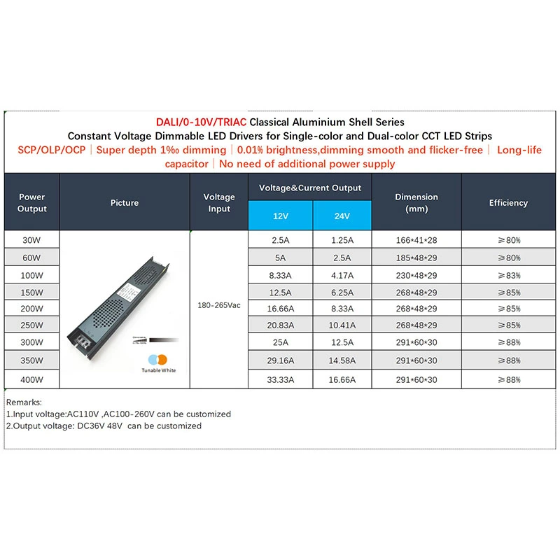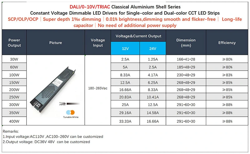 当社の定電圧 DALI CCT 調光 LED ドライバは、85% の全負荷変換効率と PF ≥0.95 を誇り、100 ~ 240VAC ユニバーサル入力と全負荷時の THD ≤15% に加えてスタンバイ消費電力が低くなります。標準ドライバーと比較してエネルギーの無駄を 15% 以上削減し、直接グローバルに展開できるようになります。