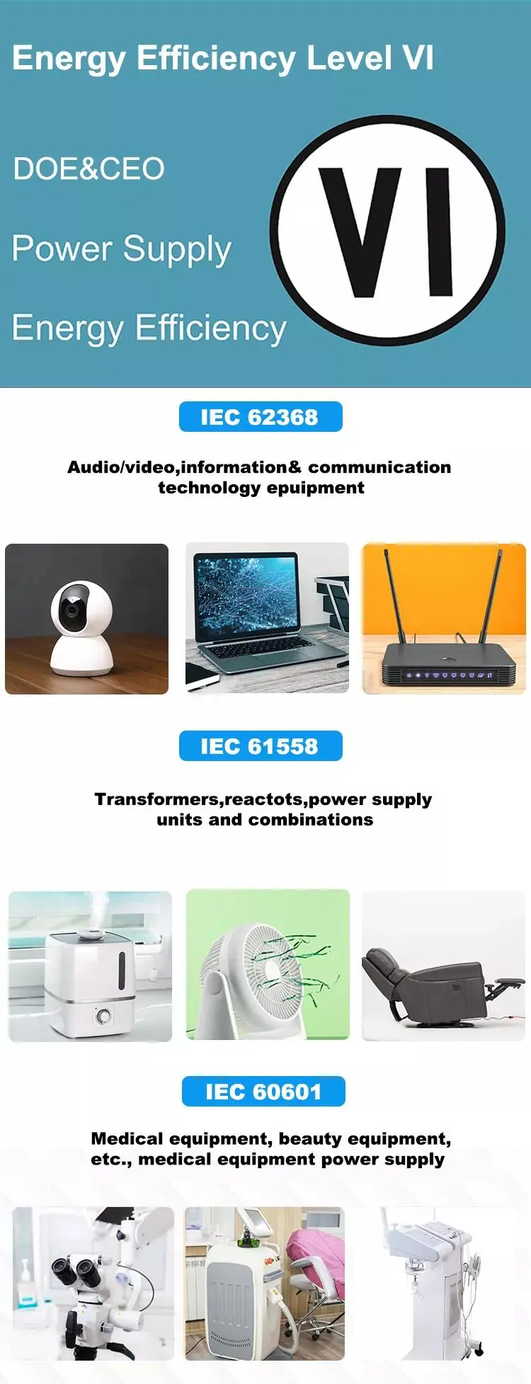 家庭用電化製品用の IEC62368、バッテリー充電器用の IEC60335、医療グレードの機器用の IEC60601、家庭用アプリケーション用の IEC61558、LED 照明用の IEC61347。 |