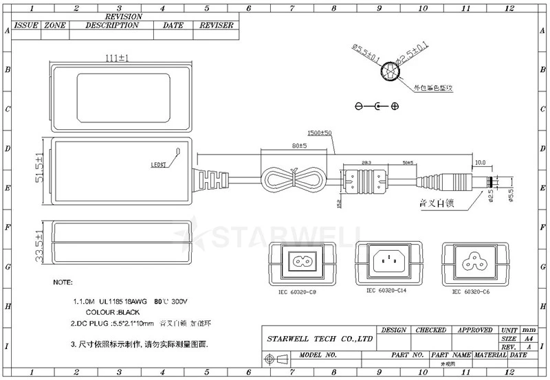 OEM: DC ヘッドのサイズ、ケーブル長、製品の色、ロゴなど