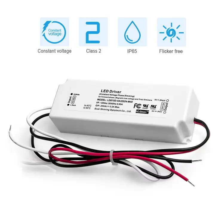 専門メーカーとして、Starwell は、LED 照明用のユニバーサル 75W トライアック調光可能電源である高品質の 75W 定電圧トライアック調光 LED ドライバーを提供したいと考えています。 この定電圧ドライバーとすでにご家庭にあるトライアック調光器を組み合わせて、簡単な照明制御をお楽しみください。ちらつきのないスムーズな調光性能を実現し、互換性の問題を排除します。 75w LED ドライバーは、調光可能な LED ストリップ ライト、キャビネット照明、コーブ照明、低電圧装飾器具で雰囲気を作り出すのに最適です。