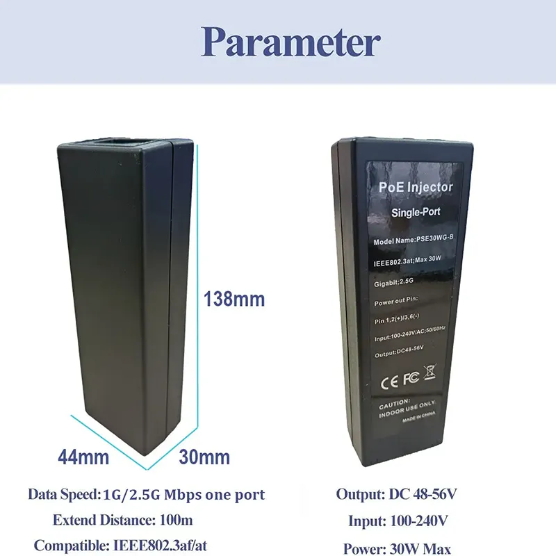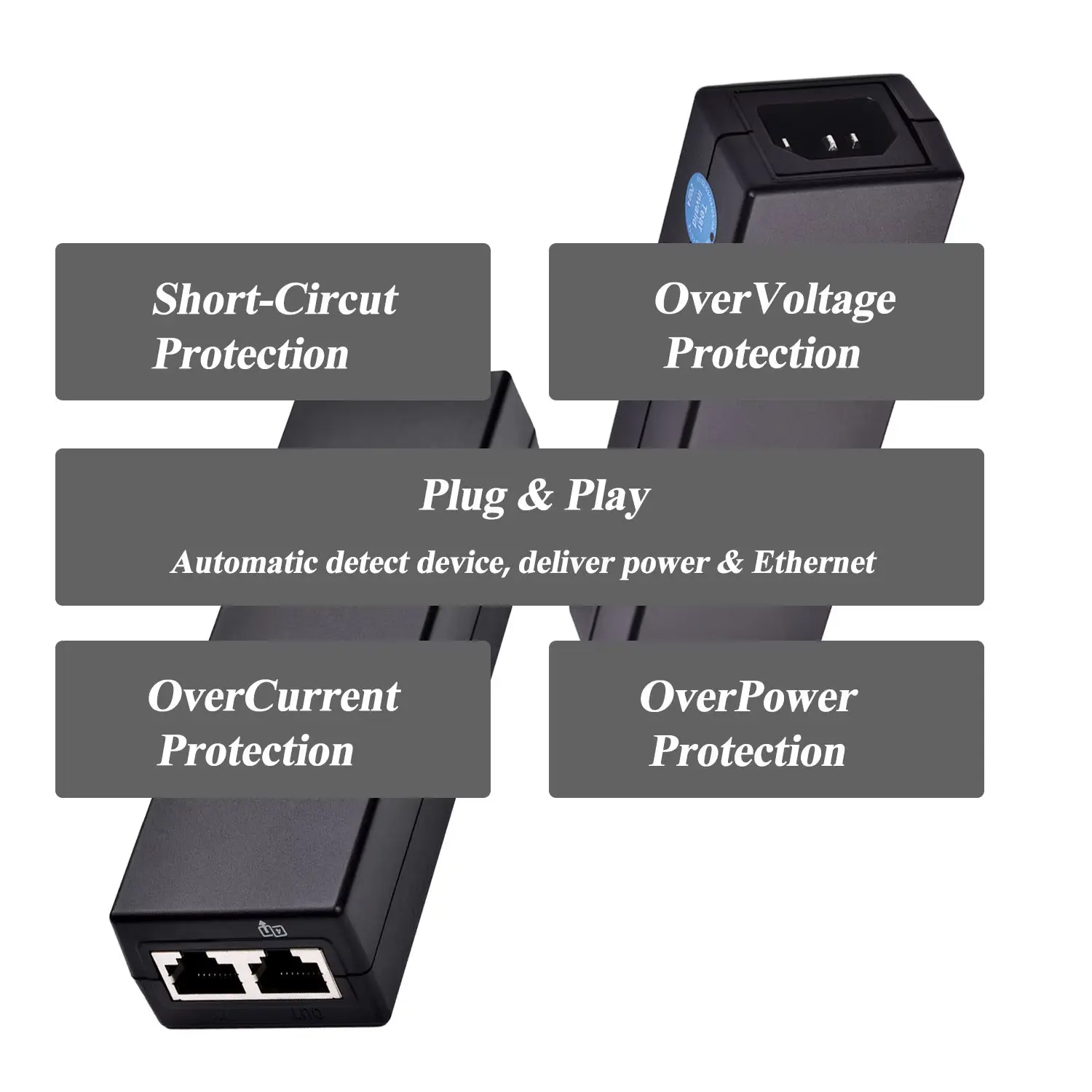 高出力: 最大 30 W の出力をサポートし、IP カメラ、ワイヤレス AP、VoIP 電話などのネットワーク デバイスに効率的に電力を供給して接続します。