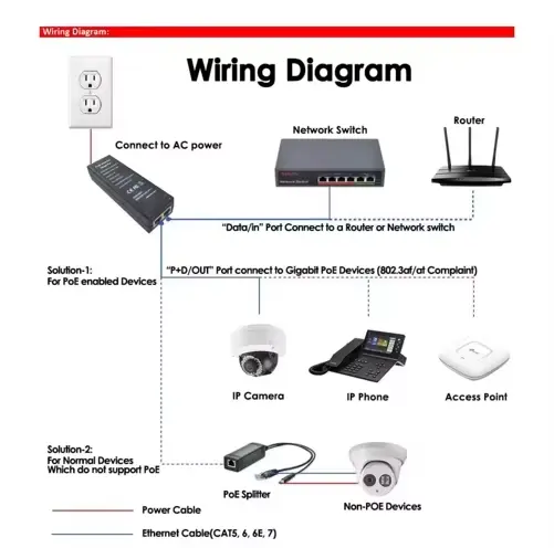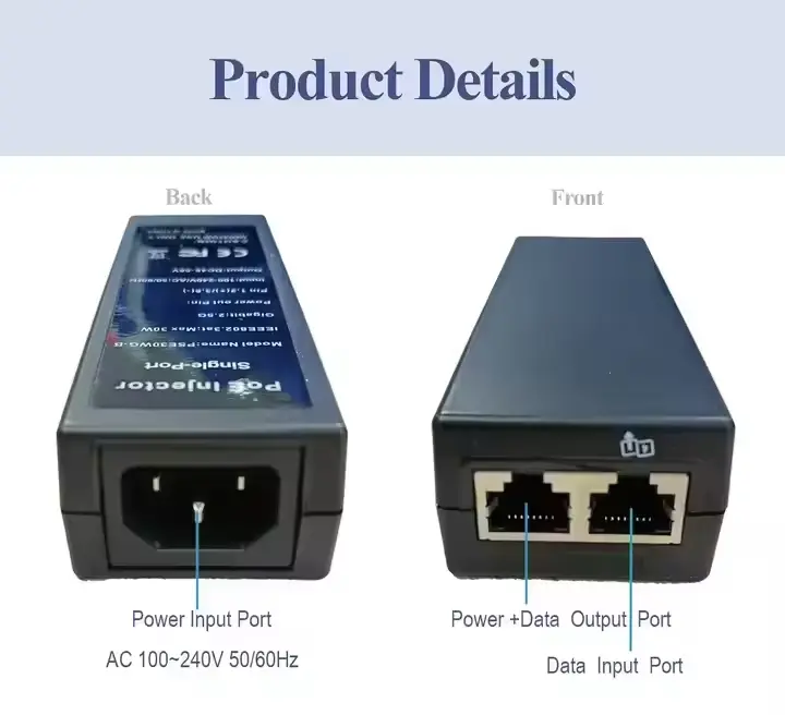電源とデータの統合: 1 本のイーサネット ケーブルで安定した 48 V 電源と完全な 1000 Mbps データを提供し、余分な配線や電源コンセントが不要になり、すっきりとした導入が可能になります。
