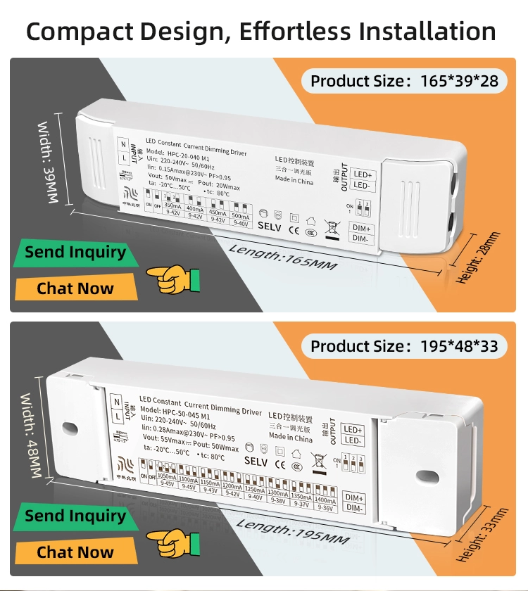 より強力な適応性を実現する幅広い電圧と高電力の互換性: Stawell 定電流 0-10V 調光 LED ドライバーの最大出力電圧は 50 ボルト、最大出力電力は 20 ワットです。 3 ~ 15 個の直列接続された LED リボンと互換性があり、スポットライト、ダウンライト、パネル ライトなど、電力 20 ワット以下のさまざまな LED 照明製品に適しています。追加のドライバーのマッチングは必要ないため、選択と適用のコストが削減されます。