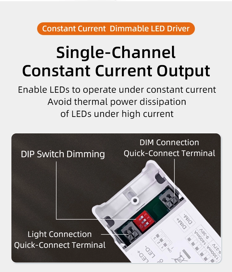 高精度定電流駆動: 出力電流は 0.15 アンペアで正確にロックされ、電流変動誤差は ±3% を超えません。これにより、LED 光源のちらつきやグレアが効果的に回避され、快適な照明が確保され、光の減衰現象が軽減され、光源の寿命が 30% 以上延長されます。
