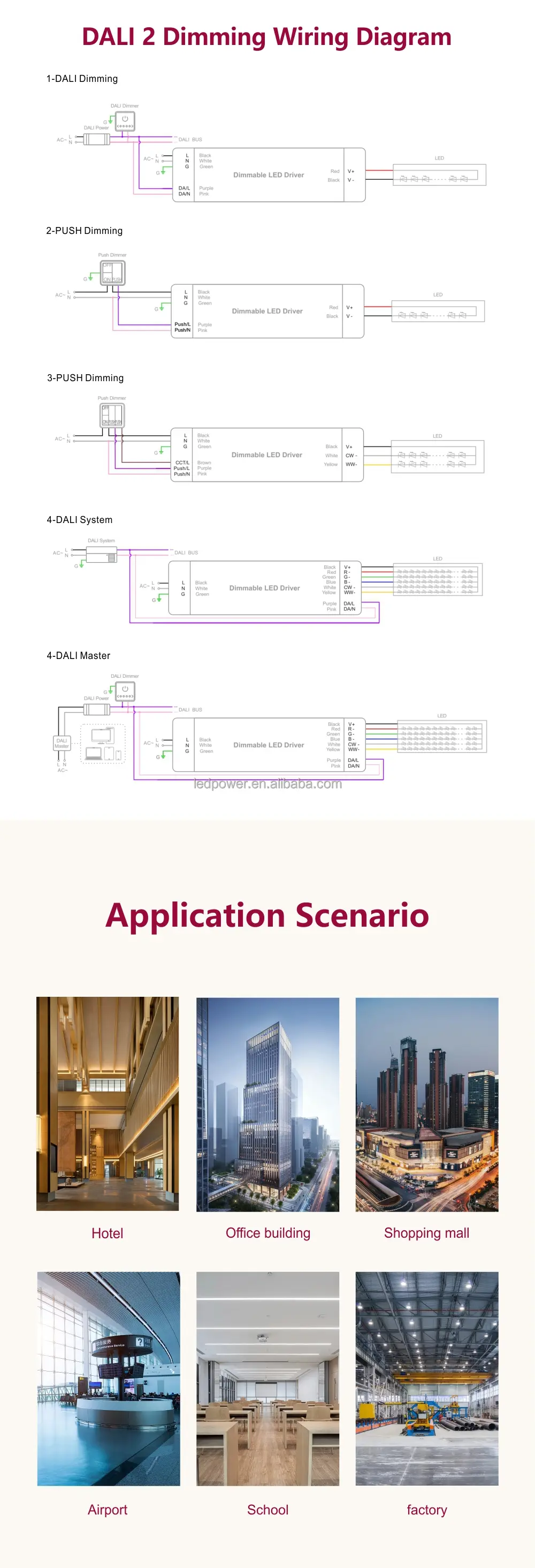 インテリジェントなデュアル色温度制御: Dali 定電圧 200W CCT 調光可能 LED ドライバーは CCT 色温度調整を統合しており、ユーザーは DALI インターフェイスを介してプリセット色温度範囲 (例: 2700K ~ 6500K) 内で光の暖かさや冷たさを自由に調整できます。広範囲の調光と組み合わせることで、暖色系の黄色から寒色系の白へのスムーズな移行を実現します。