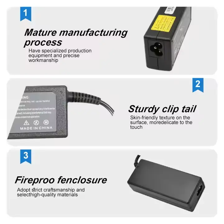 信頼性が高く効率的な電力変換を実現するように設計されたこの 65 W デスクトップ アダプタは、標準の壁コンセントからの交流 (AC) を安定した直流 (DC) にシームレスに変換し、幅広い電子機器の電力ニーズに対応します。