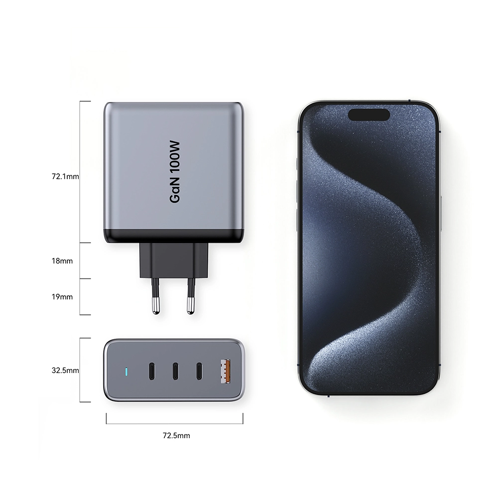 ノートパソコン用 GAN 100W 急速充電器 CE 仕様