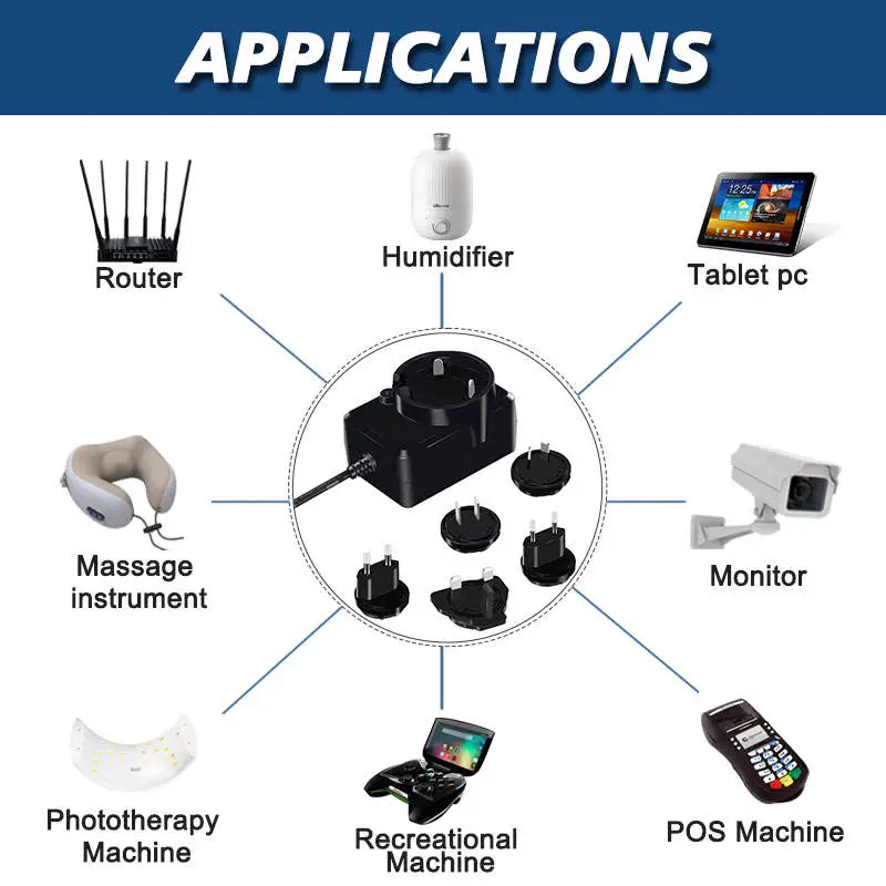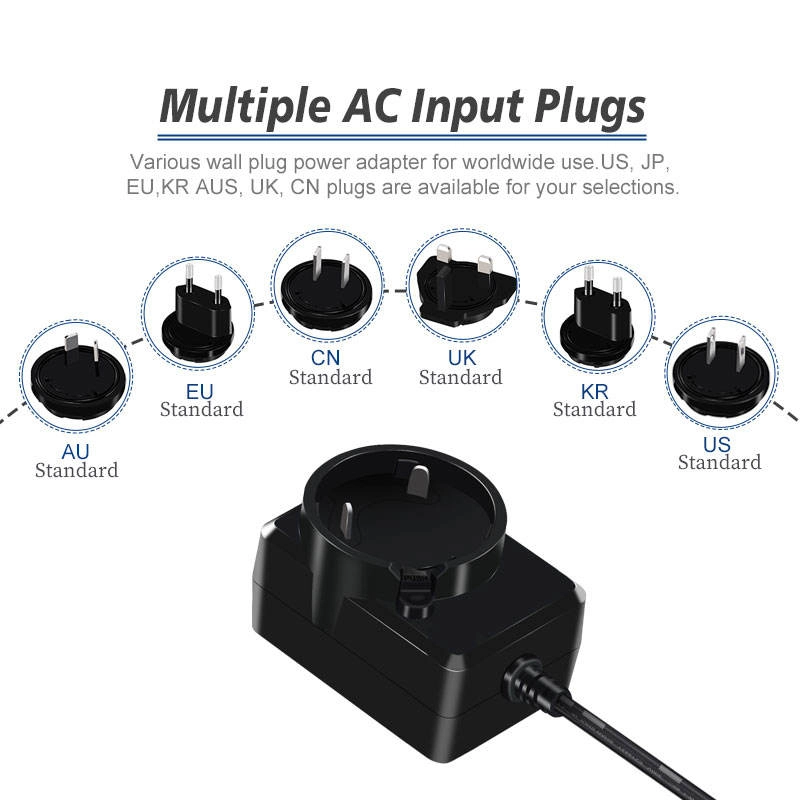 Starwell の高品質交換プラグ電源アダプターは、壁コンセントからの AC (交流) 主電源を、さまざまな電子機器に必要な安定した低電圧 DC (直流) 電力に変換するように設計された、多用途でポータブルなデバイスです。その特徴は、さまざまな国際ソケット規格に準拠した、取り外し可能で交換可能なプラグ (「AC プラグ」または「入力ブレード」と呼ばれることが多い) のセットです。