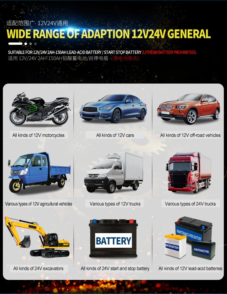 ・デュアル電圧出力:12V 8Aと24V 4Aをサポートし、車、SUV、オートバイ、トラック、ヨットなどの幅広い車両と互換性があります。