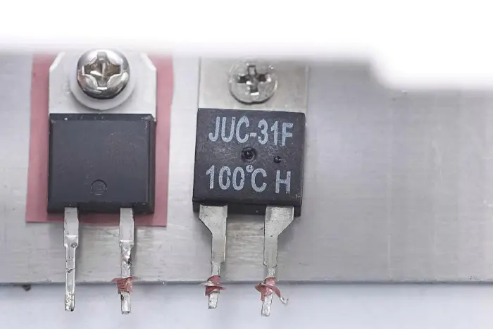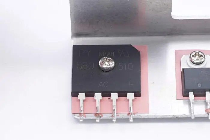 整流ブリッジ、PFC整流ダイオード、サーマルスイッチはヒートシンクに固定されています。