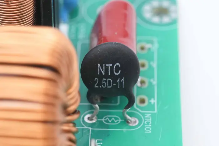 NTC サーミスタには 2.5D-11 のマークが付けられており、高電圧電解コンデンサの充電電流を抑制するために使用されます。