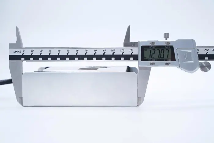 電源モジュールの長さをノギスで測ると約127.1mmです。