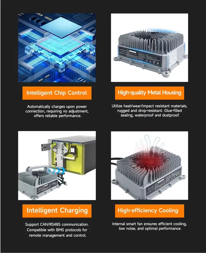 · 高度な熱管理により、充電器は極端な条件下でも効率的に動作します。